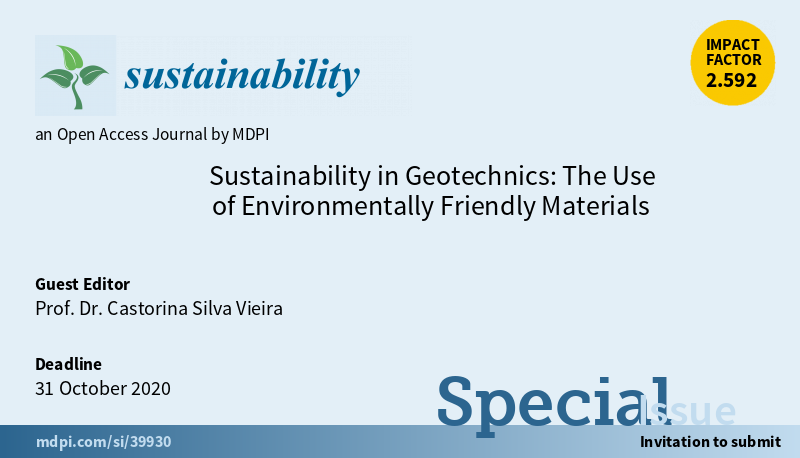 Special Issue "Sustainability in #Geotechnics: The Use of Environmentally Friendly Materials" is open.