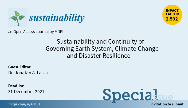 Special Issue "Sustainability and Continuity of Governing #EarthSystem, #ClimateChange and #DisasterResilience" is open.