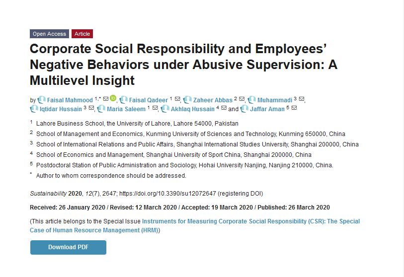 #mdpisustainability New Article “#CorporateSocialResponsibility and Employees’ Negative Behaviors under Abusive Supervision: A Multilevel Insight” @Sus_MDPI More at: https://www.mdpi.com/2071-1050/12/7/2647 …pic.twitter.com/YbWfi6WG05