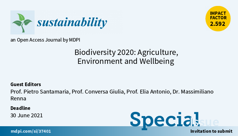 Special Issue #Biodiversity2020: #Agriculture, #Environment and #Wellbeing" is open.