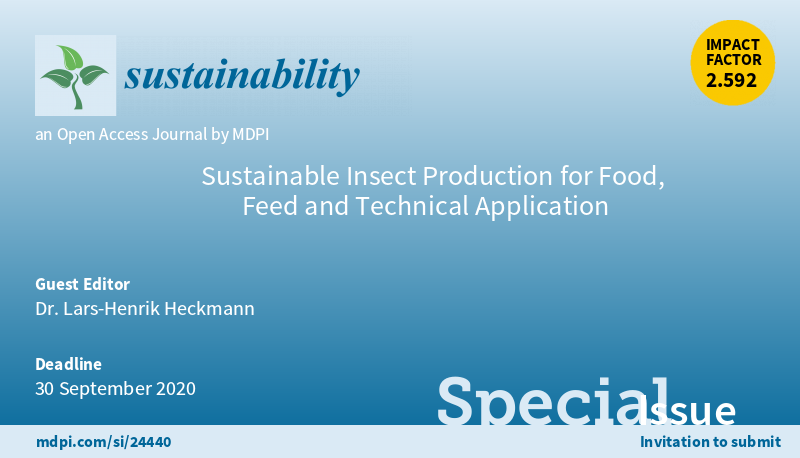 Special Issue “Sustainable #InsectProduction for Food, Feed and Technical Application" is open.