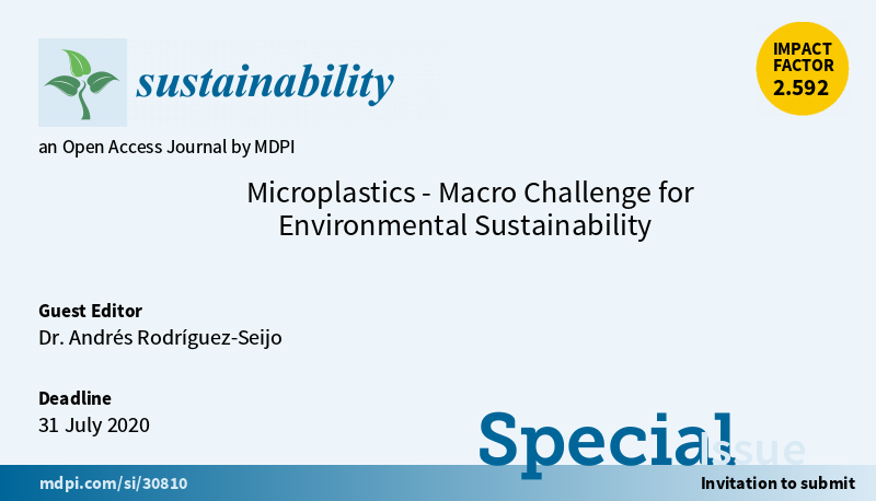 Special Issue "Microplastics - Macro Challenge for Environmental Sustainability" welcomes submissions. Edited by Dr. Andrés Rodríguez-Seijo from University of Porto More at:https://www.mdpi.com/journal/sustainability/special_issues/ma_microplastics … (Submission deadline: 31 July 2020)pic.twitter.com/y7GSxHJ56Q