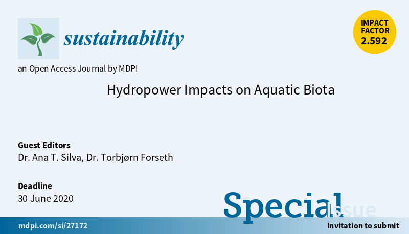 Special Issue on #hydropower impacts on #aquatic life is approaching its deadline, 20 June 2020. Guest editors are Dr. Ana T. Silva @AnaTSilva2 and Dr. Torbjørn Forseth