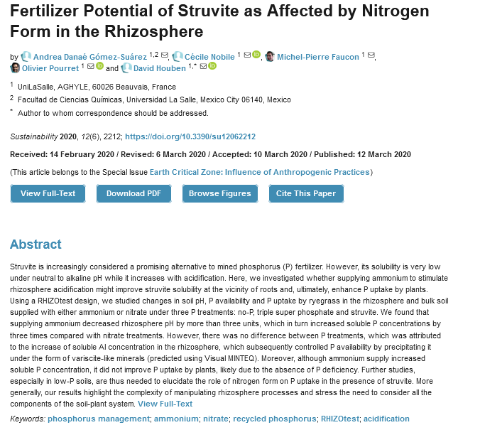 Fertilizer Potential of Struvite as Affected by Nitrogen Form in the Rhizosphere ;