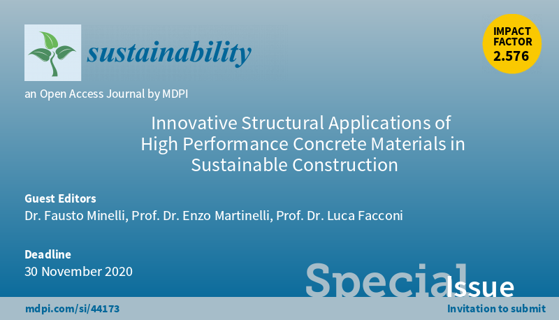 Special Issue "Innovative Structural Applications of High Performance Concrete Materials in Sustainable Construction" welcomes submission Edited by Dr. Fausto Minelli, Prof. Dr. Enzo Martinelli and Prof. Dr. Luca Facconi More at: https://www.mdpi.com/journal/sustainability/special_issues/structural_application …pic.twitter.com/6OAX3xqOYD