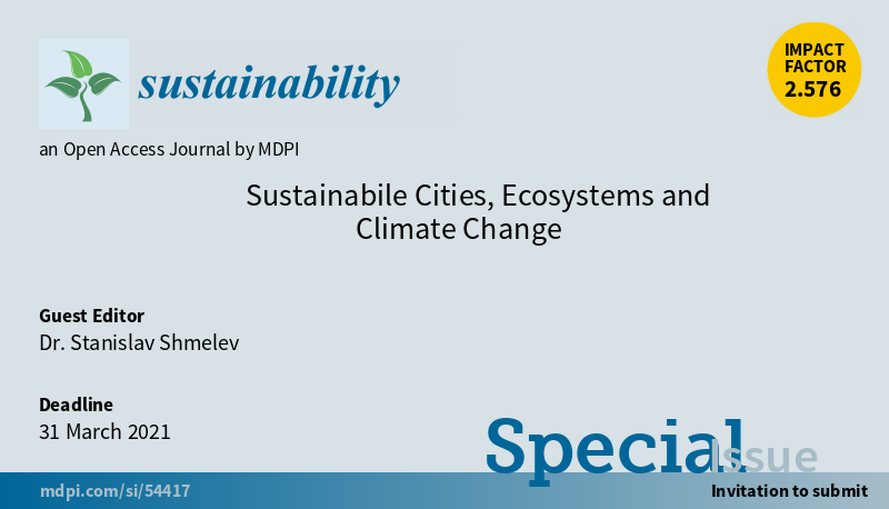 Special Issue "Sustainabile Cities, Ecosystems and Climate Change" welcomes submission