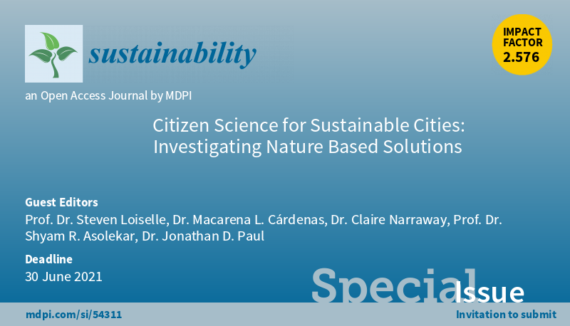 Special Issue "Citizen Science for Sustainable Cities: Investigating Nature Based Solutions" welcomes submission