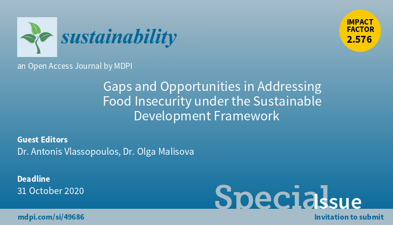 Special Issue "Gaps and Opportunities in Addressing Food Insecurity under the Sustainable Development Framework" welcomes submission