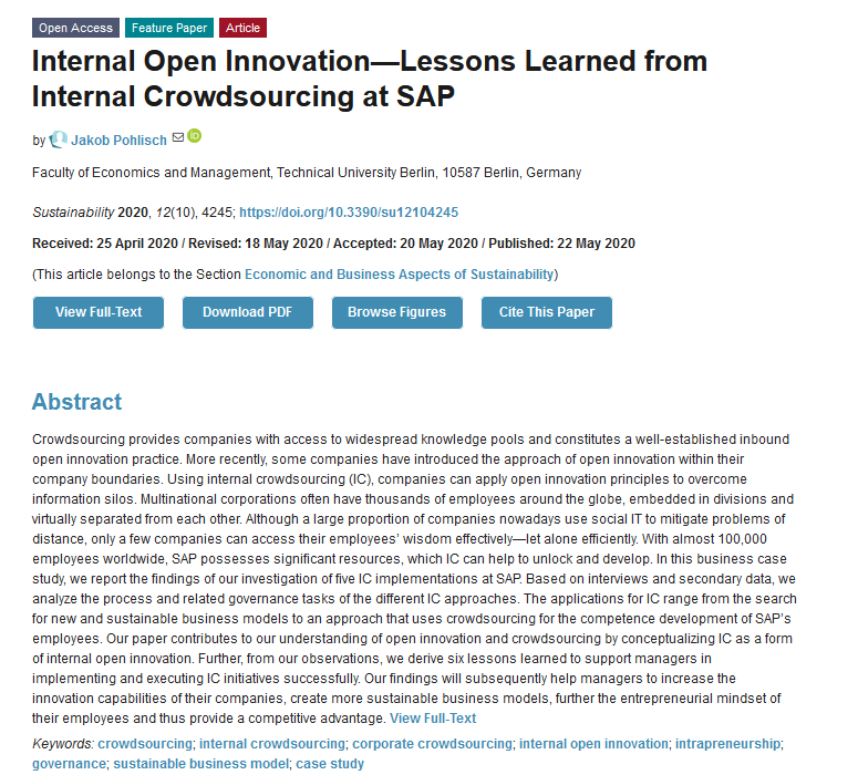 Internal Open Innovation—Lessons Learned from Internal Crowdsourcing at SAP;