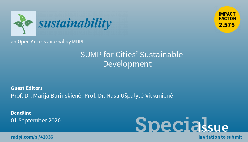 Special Issue "SUMP for Cities’ Sustainable Development" welcomes submission Edited by Prof. Dr. Marija Burinskienė and Prof. Dr. Rasa Ušpalytė-Vitkūnienė #SustainableUrbanMobility #sustainabledevelopment Deadline: 1 September 2020 More at: https://www.mdpi.com/journal/sustainability/special_issues/sump_sus …pic.twitter.com/21LfsrzQS2