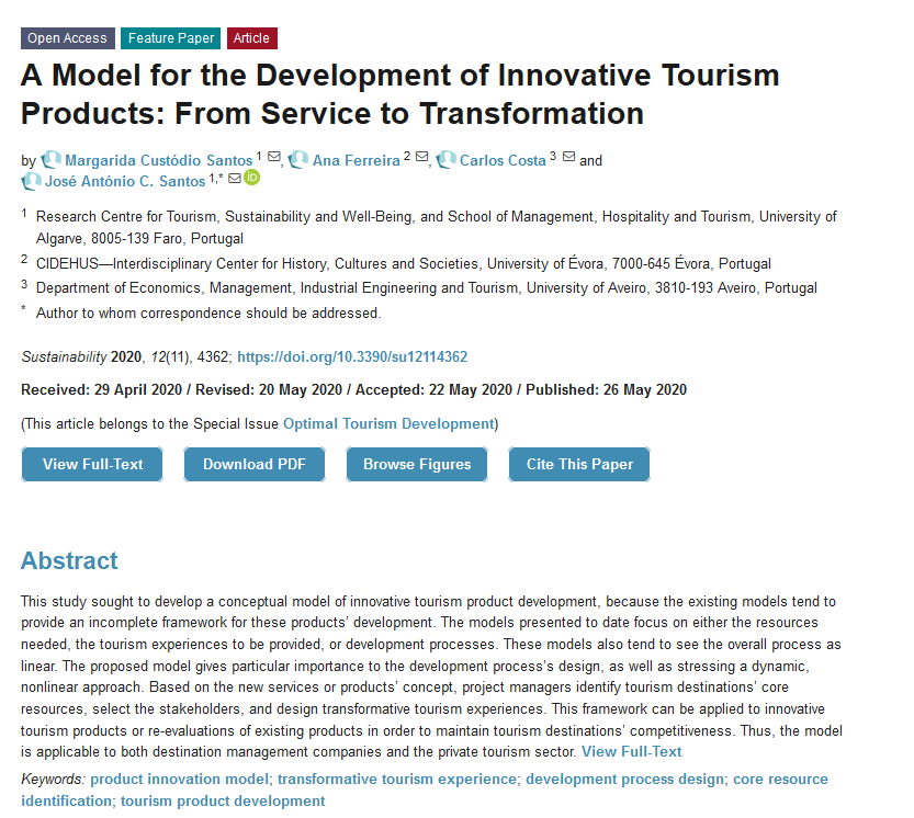 #SUSFeaturePaper A Model for the Development of Innovative Tourism Products: From Service to Transformation; by José António C. Santos et al.; https://www.mdpi.com/2071-1050/12/11/4362 …; #tourismproductdevelopment #transformativetourismpic.twitter.com/E5fHaCbWe4