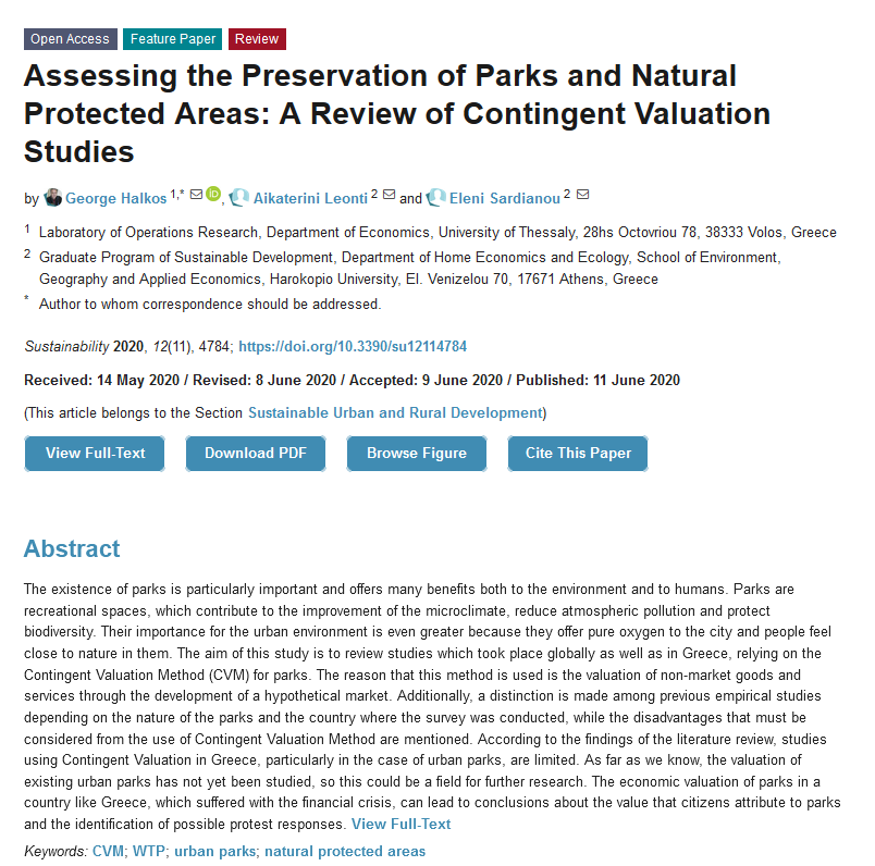 Assessing the Preservation of Parks and Natural Protected Areas: A Review of Contingent Valuation Studies;