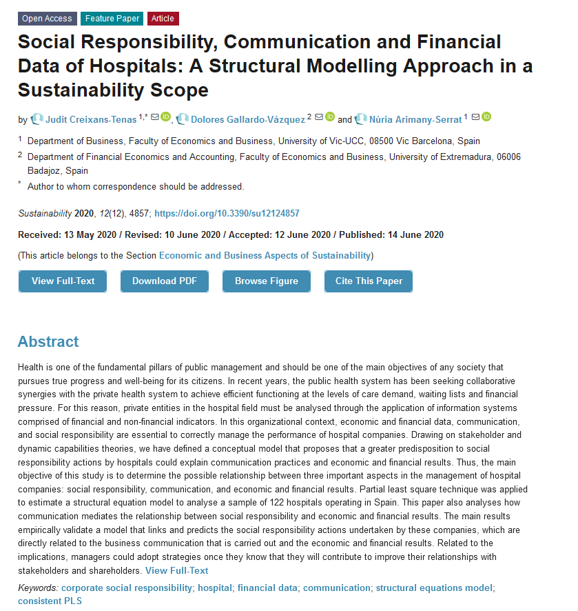 #SUSFeaturePaper Social Responsibility, Communication and Financial Data of Hospitals: A Structural Modelling Approach in a Sustainability Scope; by Judit Creixans-Tenas , Dolores Gallardo-Vázquez and Núria Arimany-Serrat https://www.mdpi.com/2071-1050/12/12/4857 …; #CSR #hospital #financialdatapic.twitter.com/0Kin9kT7jD
