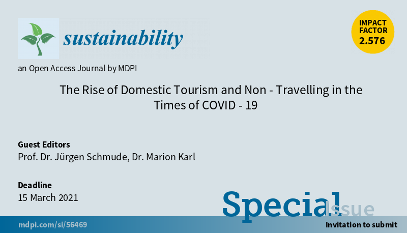 Special Issue "The Rise of Domestic Tourism and Non-Travelling in the Times of COVID-19" welcomes submission