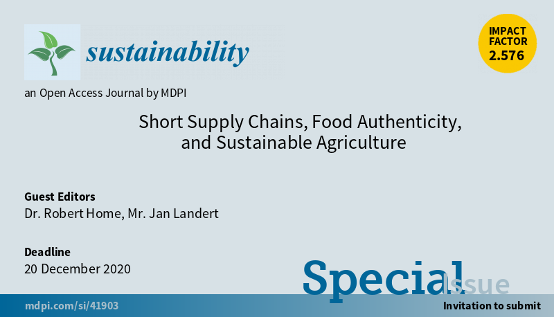 Special Issue "Short Supply Chains, Food Authenticity, and Sustainable Agriculture" welcomes submission