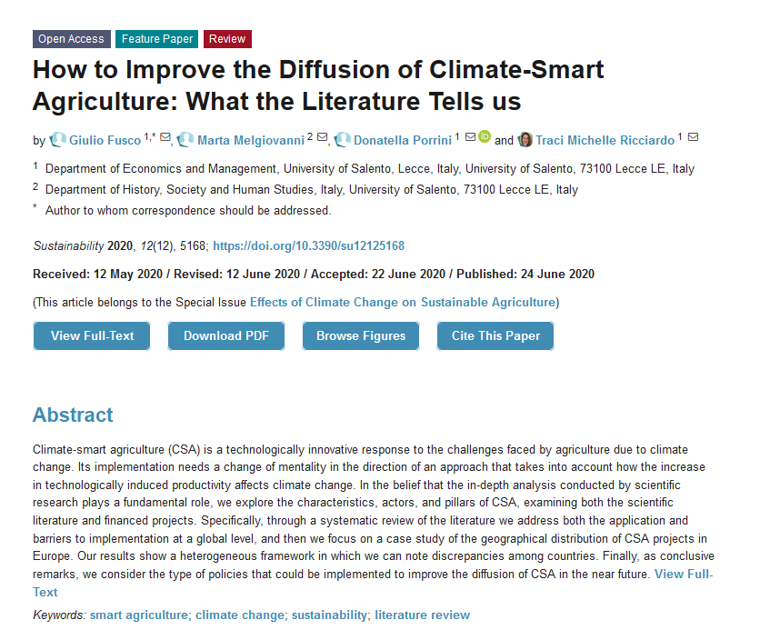 #SUSFeaturePaper How to Improve the Diffusion of Climate-Smart Agriculture: What the Literature Tells us; by Giulio Fusco et al., https://www.mdpi.com/2071-1050/12/12/5168 …; #smartagriculture; #climatechange; #sustainabilitypic.twitter.com/6ViO3ttrf0