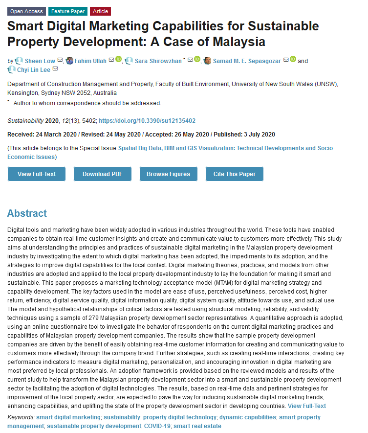 Smart Digital Marketing Capabilities for Sustainable Property Development: A Case of Malaysia;