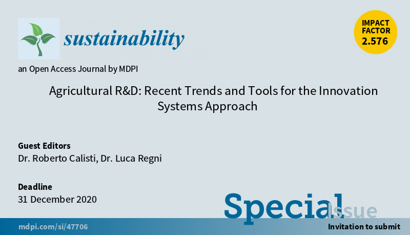 Special Issue "Agricultural R&D: Recent Trends and Tools for the Innovation Systems Approach" welcomes submission