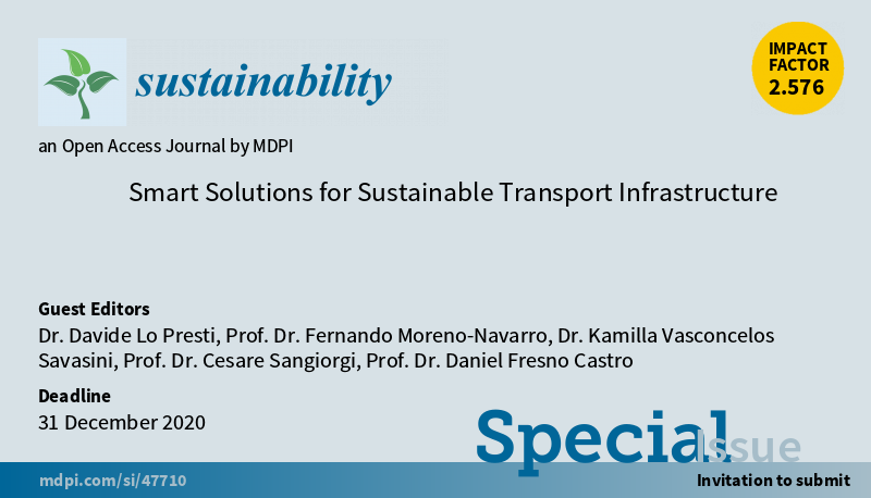 Special Issue "Smart Solutions for Sustainable Transport Infrastructure" welcomes submission