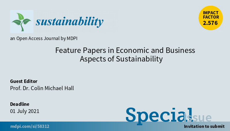 Special Issue "Feature Papers in Economic and Business Aspects of Sustainability" welcomes submission Edited by Prof. Dr. Colin Michael Hall #Economic Deadline for manuscript submissions: 1 July 2021 More at: https://www.mdpi.com/journal/sustainability/special_issues/feature_economic_business …pic.twitter.com/6fzholl23r