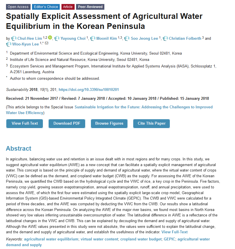 Spatially Explicit Assessment of Agricultural Water Equilibrium in the Korean Peninsula;