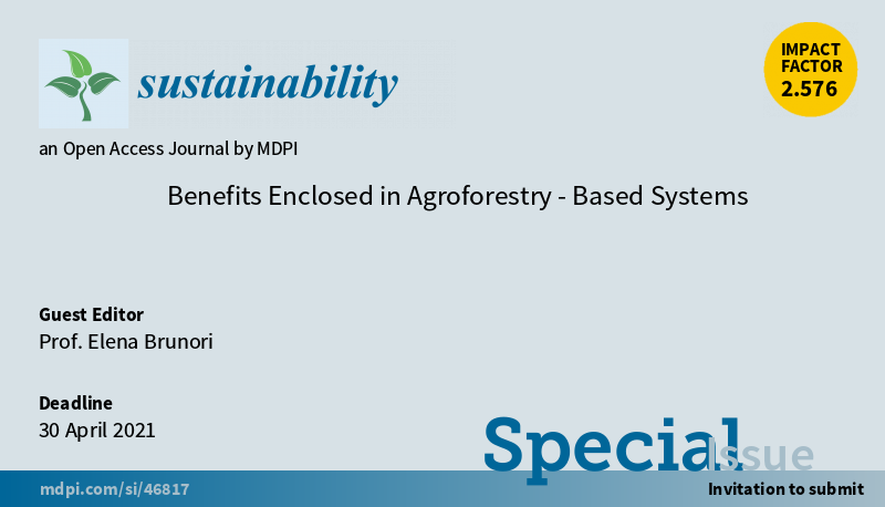 Special Issue "Benefits Enclosed in #Agroforestry-Based Systems" welcomes submission