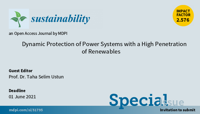 Special Issue "Dynamic Protection of Power Systems with a High Penetration of Renewables" welcomes submission Edited by Prof. Dr. Krishna P Paudel Deadline for submissions: 1 June 2021 #Algorithms #Control More at: https://www.mdpi.com/journal/sustainability/special_issues/Power_Renewables_sus …pic.twitter.com/haMw5B7FzG