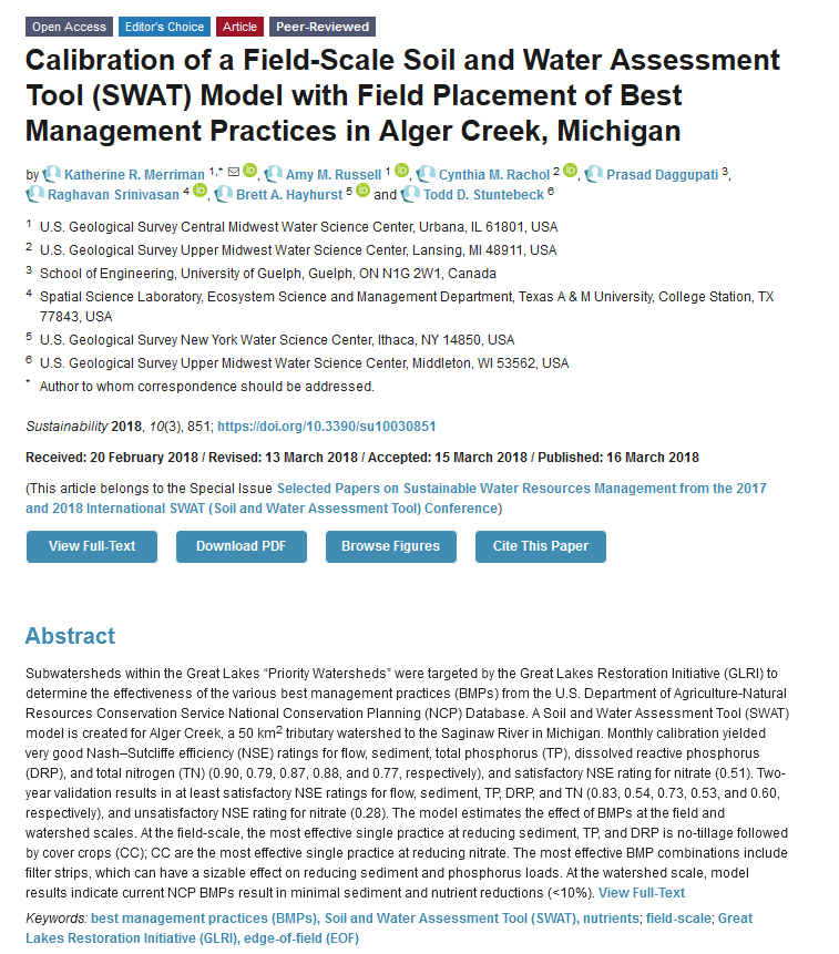 #SUSEditorialChoice Calibration of a Field-Scale Soil and Water Assessment Tool (SWAT) Model with Field Placement of Best Management Practices in Alger Creek, Michigan; by Katherine R. Merriman et al., https://www.mdpi.com/2071-1050/10/3/851 …; #BMPs #SoilandWaterAssessmentTool #SWAT #FieldScalepic.twitter.com/K7vHPEtDa9