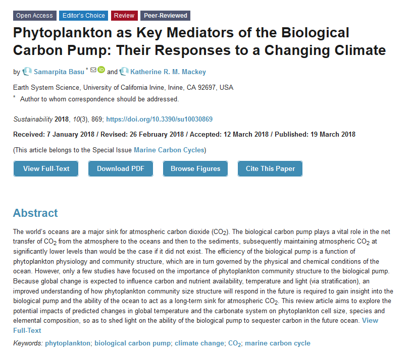 #SUSEditorialChoice Phytoplankton as Key Mediators of the Biological Carbon Pump: Their Responses to a Changing Climate; by Samarpita Basu and Katherine R. M. Mackey from @UCIrvine https://www.mdpi.com/2071-1050/10/3/869 …; #phytoplankton; #BiologicalCarbonPump; #ClimateChange; #CO2pic.twitter.com/WUBBMg3yz2