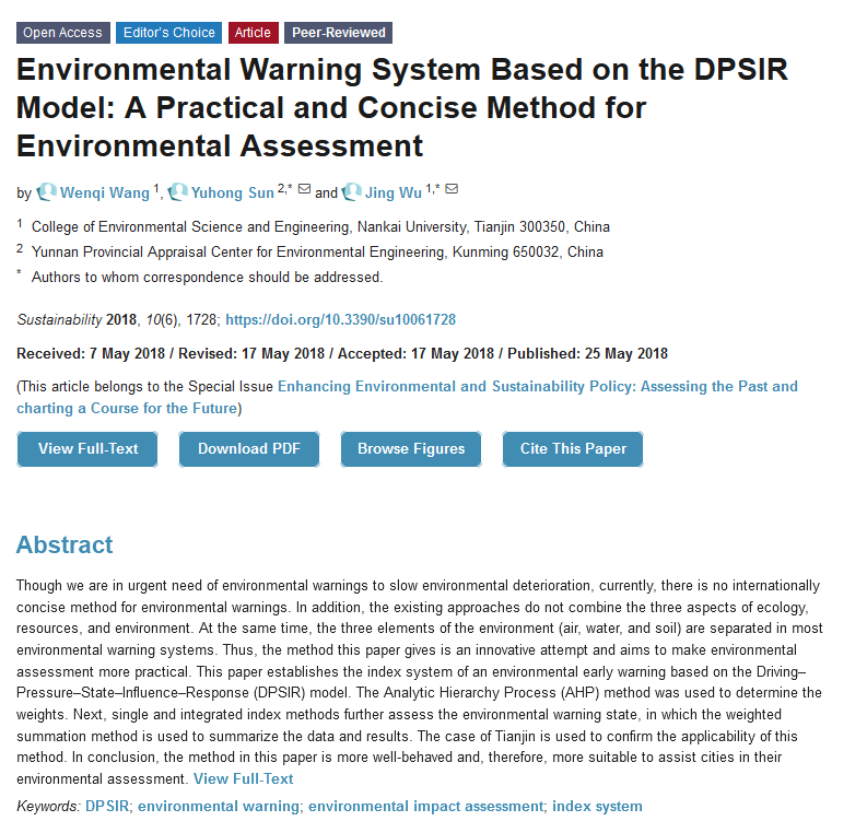 #SUSEditorialChoice Environmental Warning System Based on the DPSIR Model: A Practical and Concise Method for Environmental Assessment by Wenqi Wang, Yuhong Sun and Jing Wu https://www.mdpi.com/2071-1050/10/6/1728 … #DPSIR #environmentalwarning #environmentalimpactassessment #indexsystempic.twitter.com/q6qmutkWfA