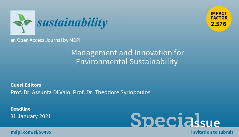 Special Issue "Management and Innovation for Environmental Sustainability" welcomes submission