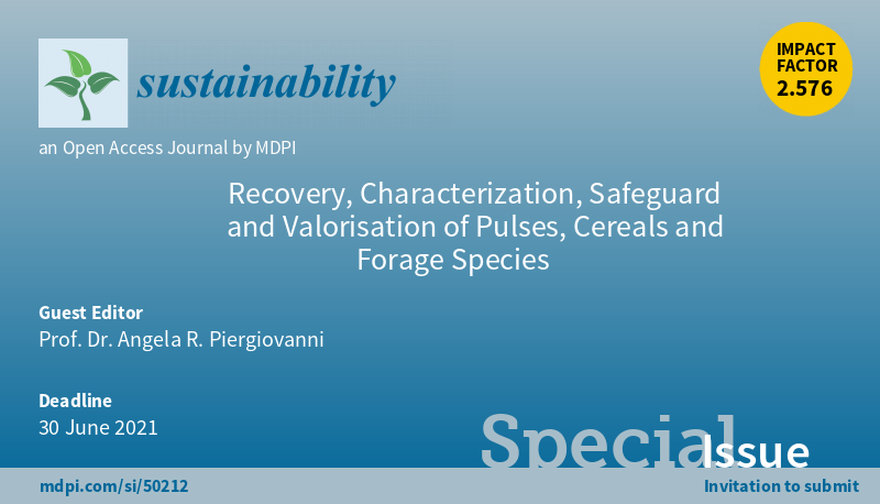 Special Issue "Recovery, Characterization, Safeguard and Valorisation of Pulses, Cereals and Forage Species" welcomes submission
