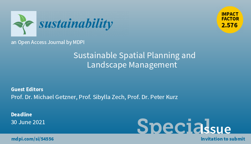 Special Issue "Sustainable Spatial Planning and Landscape Management" welcomes submission Leading Guest Editor: Prof. Dr. Michael Getzner #Sustainability #landuse #landscape #ecosystem #conservation More at: https://www.mdpi.com/journal/sustainability/special_issues/Spatial_Planning_Landscape_Management#editors …pic.twitter.com/zRSO0MhC6h