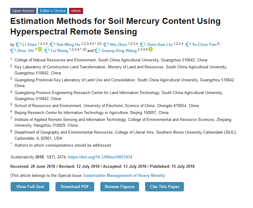 Estimation Methods for Soil Mercury Content Using Hyperspectral Remote Sensing