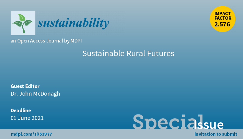 Special Issue "Sustainable Rural Futures" welcomes submission Guest Editor: Dr. John McDonagh #Sustainability #ruralfutures #farmtransfer More at: https://www.mdpi.com/journal/sustainability/special_issues/rural_futures …pic.twitter.com/FLpGCRJpgs