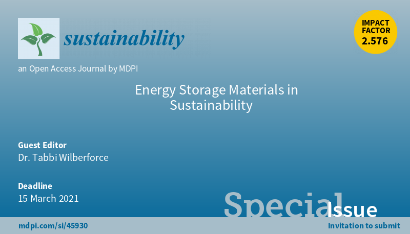 Special Issue "Energy Storage Materials in Sustainability" welcomes submission