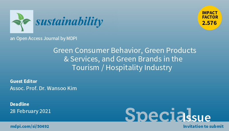 Special Issue "Green Consumer Behavior, Green Products & Services, and Green Brands in the Tourism/Hospitality Industry" welcomes submission