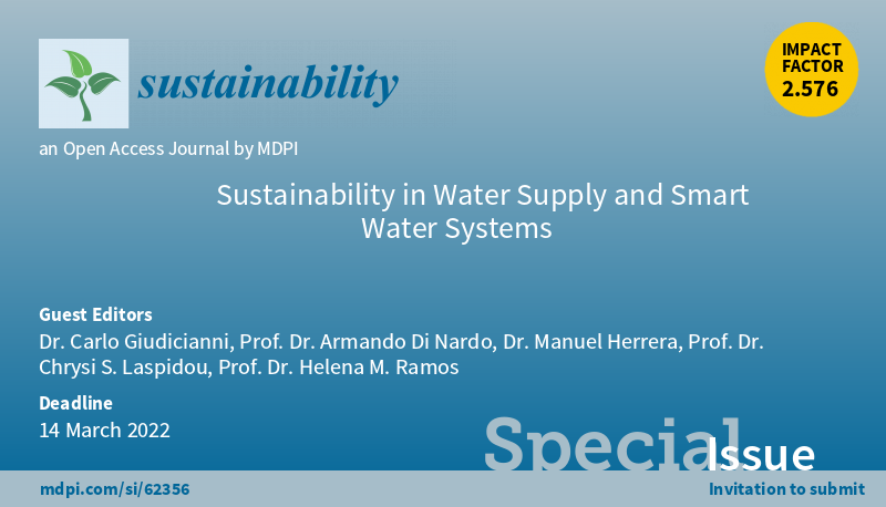 Special Issue "Sustainability in Water Supply and Smart Water Systems" welcomes submission