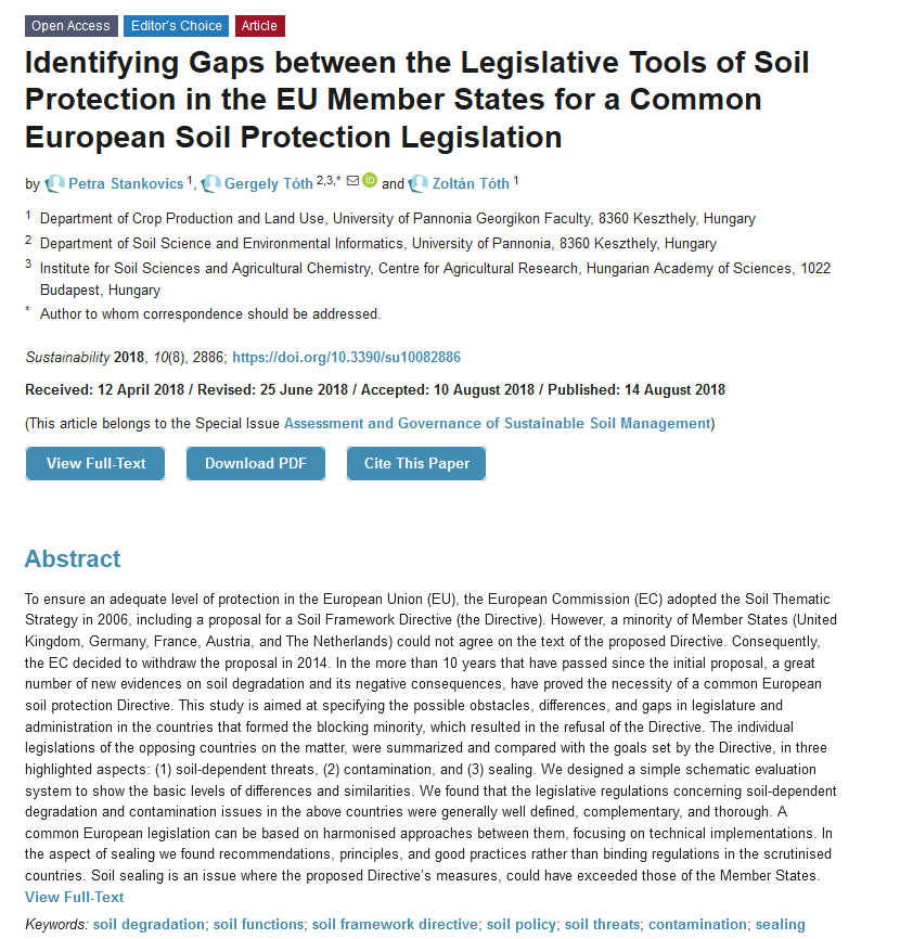 Identifying Gaps between the Legislative Tools of Soil Protection in the EU Member States for a Common European Soil Protection Legislation