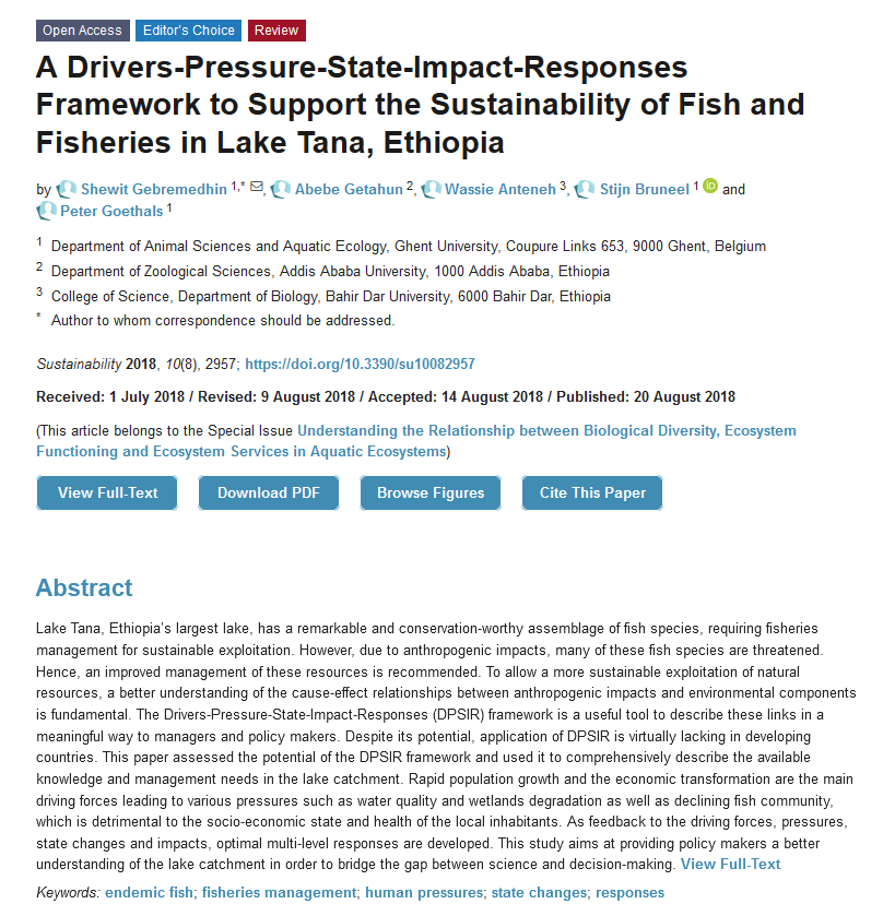#SUSEditorialChoice A Drivers-Pressure-State-Impact-Responses Framework to Support the Sustainability of Fish and Fisheries in Lake Tana, Ethiopia by Shewit Gebremedhin et al., https://www.mdpi.com/2071-1050/10/8/2957 … #fisheriesmanagement; #humanpressures; #statechangespic.twitter.com/jxRAaS8hiR