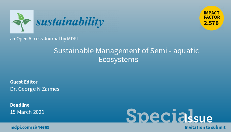 Special Issue "Sustainable Management of Semi-aquatic Ecosystems" welcomes submission