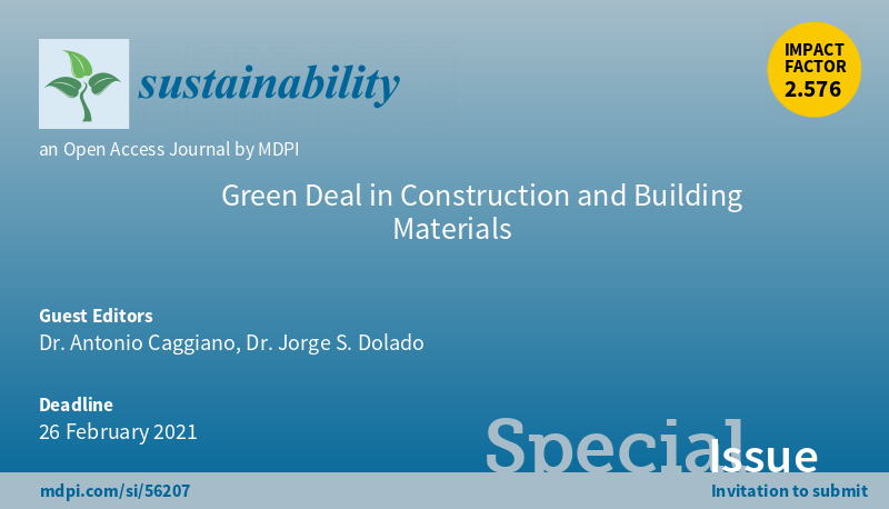 Special Issue "Green Deal in Construction and Building Materials" welcomes submission