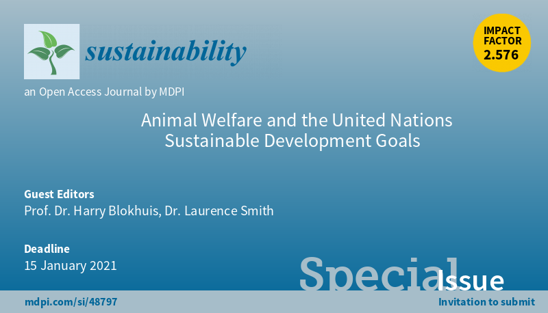 #Sustainability Special Issue "Animal Welfare and the United Nations Sustainable Development Goals" welcomes submission Lead Guest Editor: Prof. Dr. Harry Blokhuis #Animal #Welfare #SDG #tradeoffs More at: https://www.mdpi.com/journal/sustainability/special_issues/Animal_Welfare_Sustainable …pic.twitter.com/e6GJuw6dMx