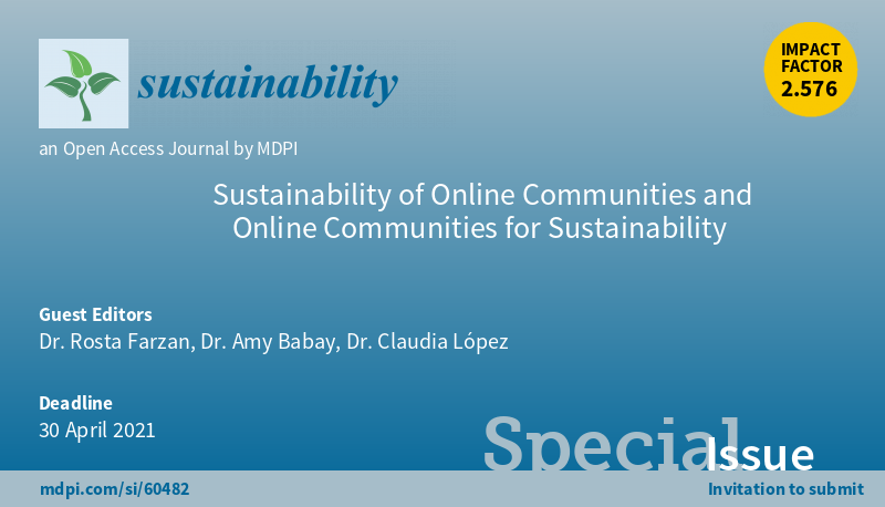 Special Issue "Sustainability of Online Communities and Online Communities for Sustainability" welcomes submission