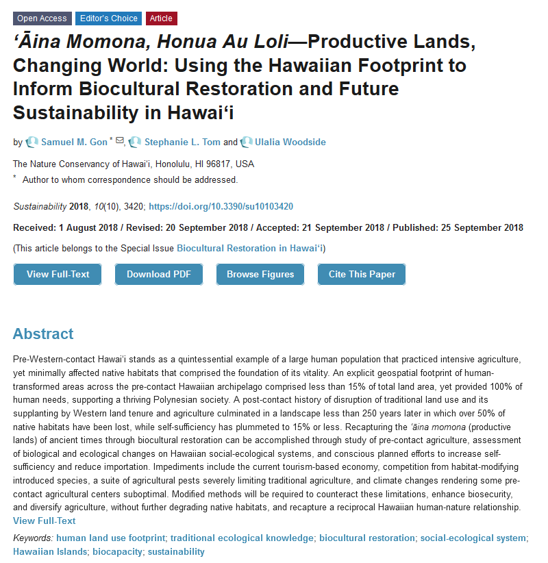 ʻĀina Momona, Honua Au Loli—Productive Lands, Changing World: Using the #Hawaiian Footprint to Inform #Biocultural Restoration and #FutureSustainability in Hawai‘i