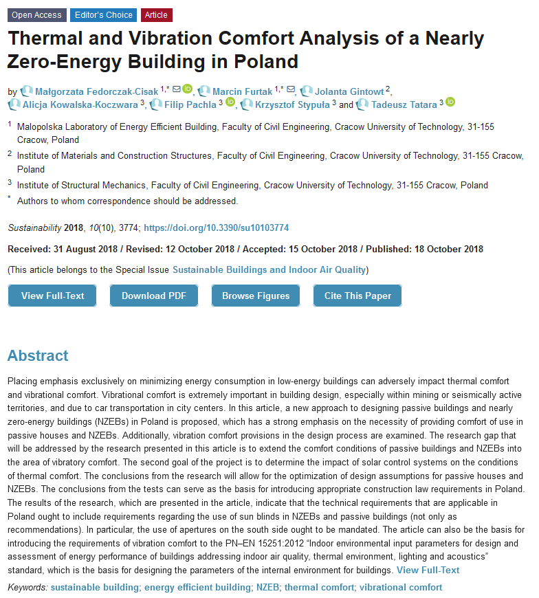 Thermal and #VibrationComfort Analysis of a Nearly Zero-Energy Building in #Poland