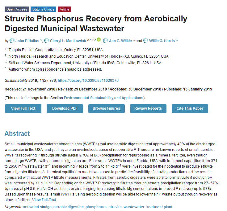 #Struvite Phosphorus Recovery from Aerobically Digested Municipal #Wastewater