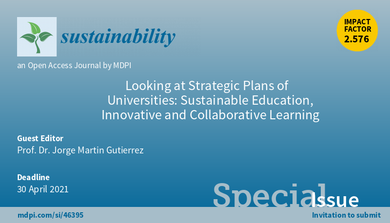 Special Issue "Looking at Strategic Plans of Universities: Sustainable Education, Innovative and Collaborative Learning" welcomes submission