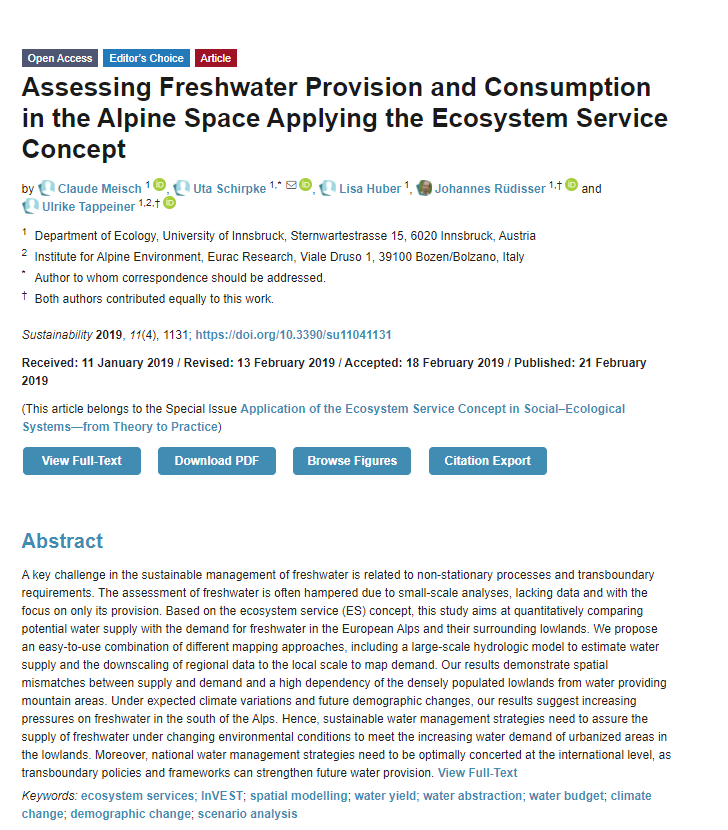 Assessing Freshwater Provision and Consumption in the Alpine Space Applying the #ecosystems Service Concept