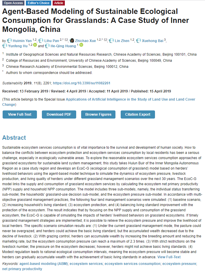 #Agent-Based Modeling of Sustainable #Ecological #consumption for Grasslands: A Case Study of Inner #Mongolia, #China
